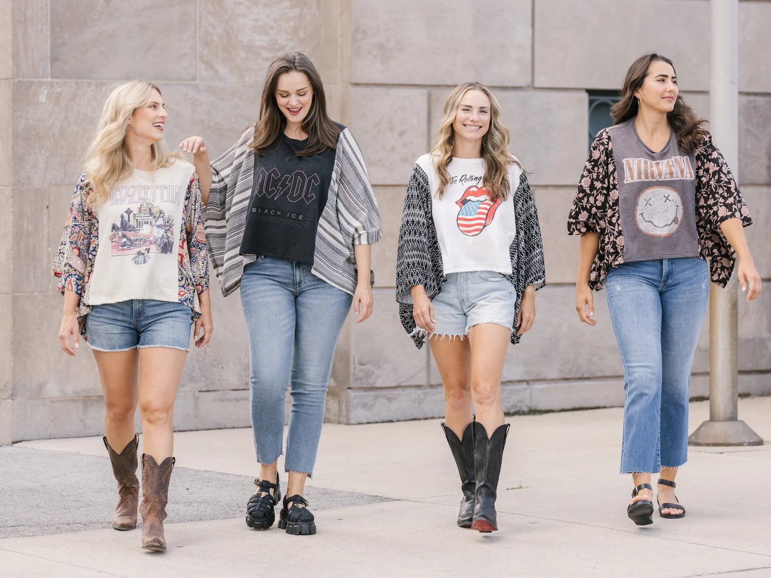 These vintage band tee pieces have been made using upcycled Rock band tees, each piece is one-of-a-kind and designed combining deconstructed vintage denim and upcycled band tees. This diverts it from the landfills and gives it new life.