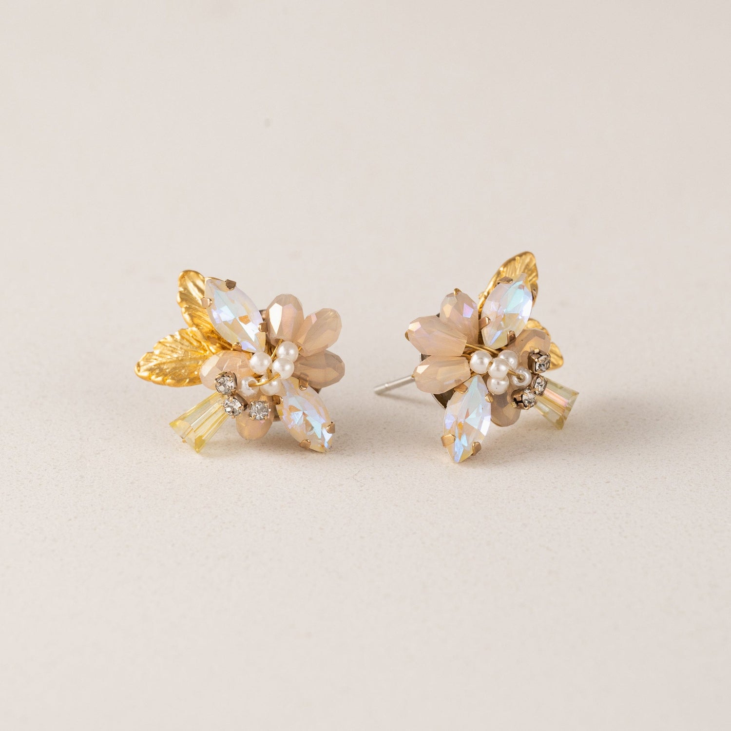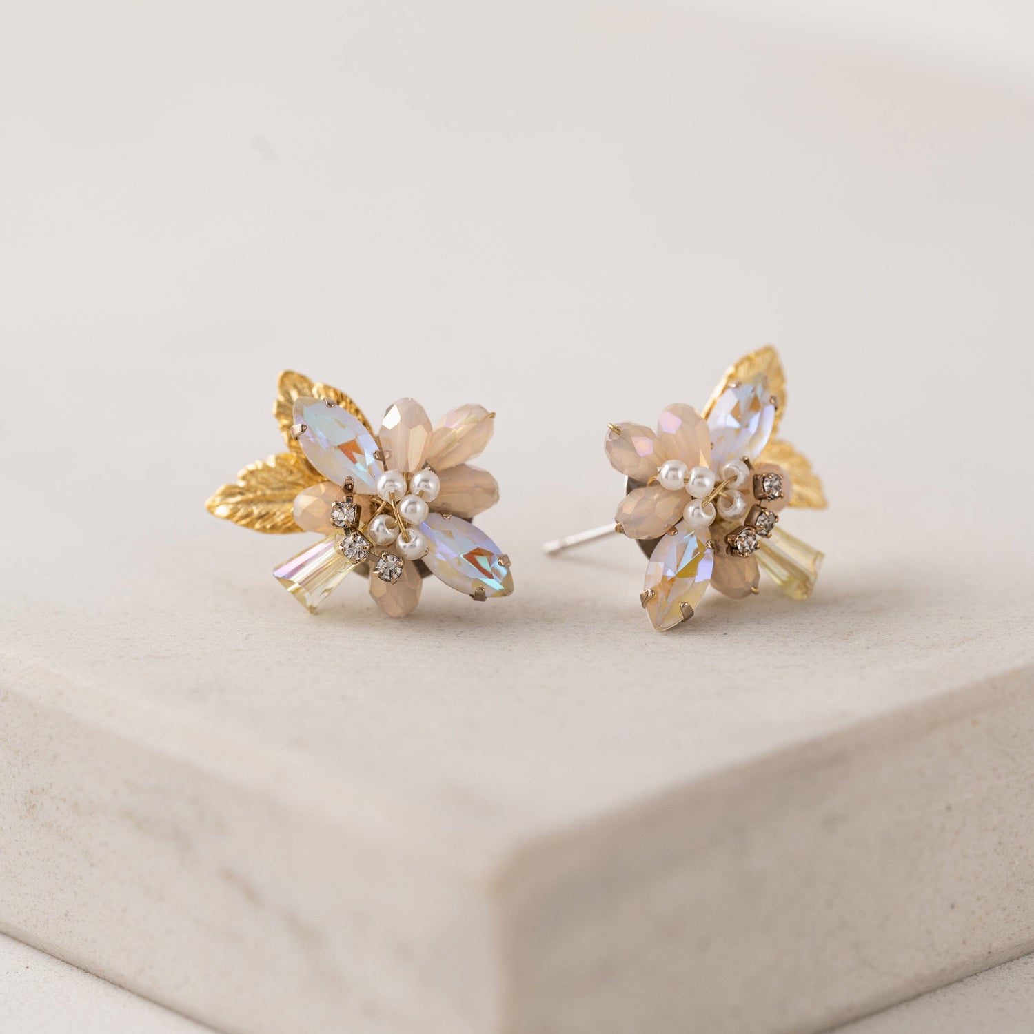 Dainty crystals and gold-dipped leaves form a botanical piece that's both timeless and enchanting.