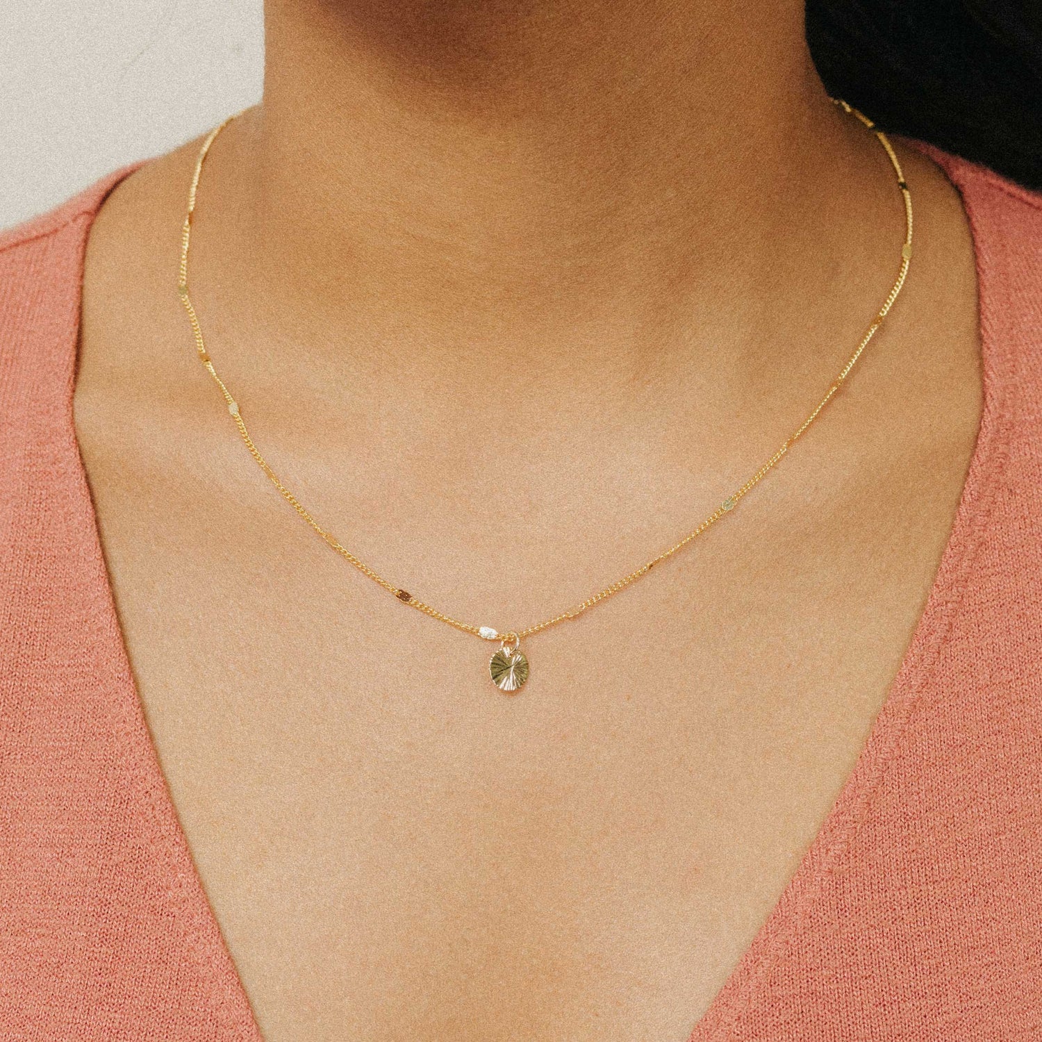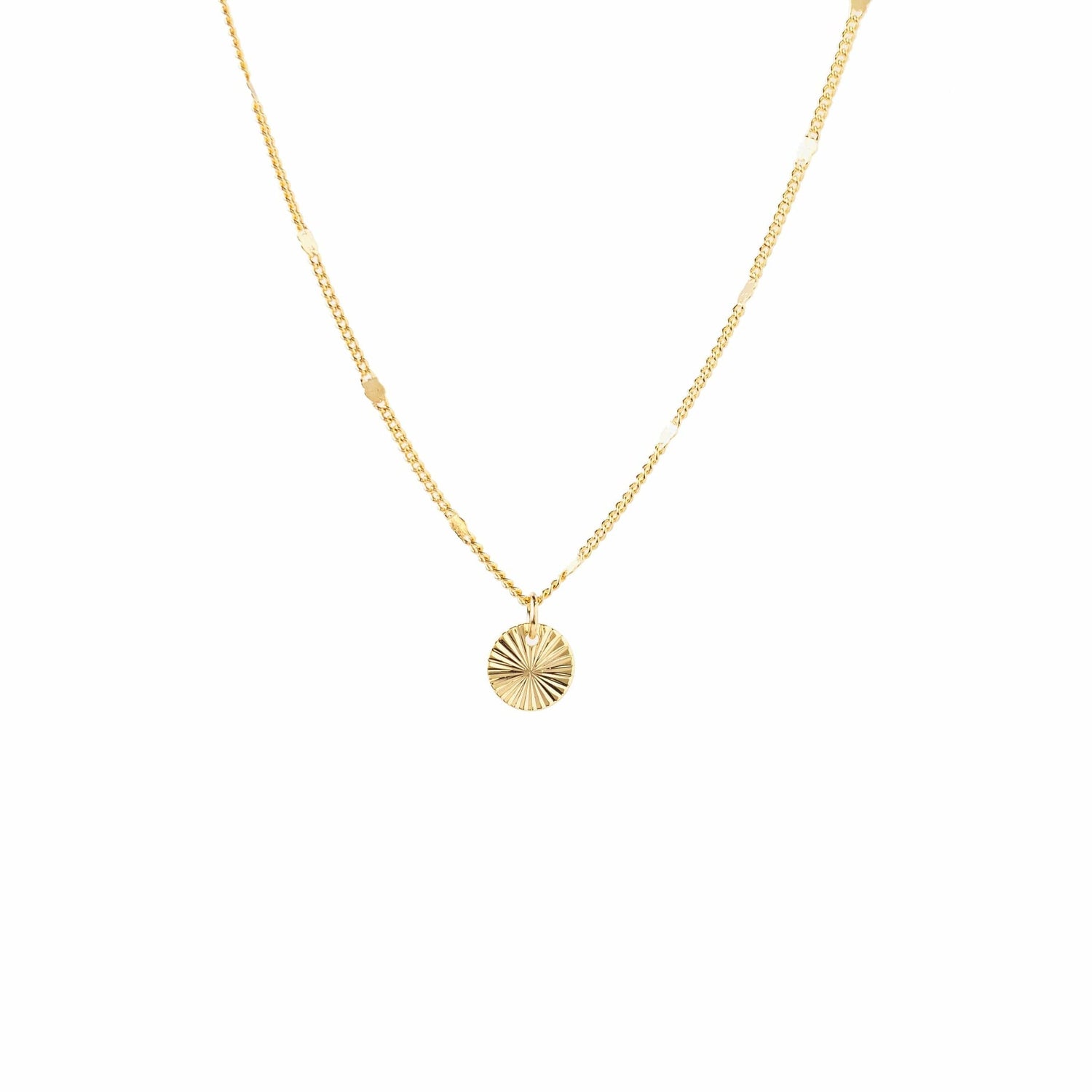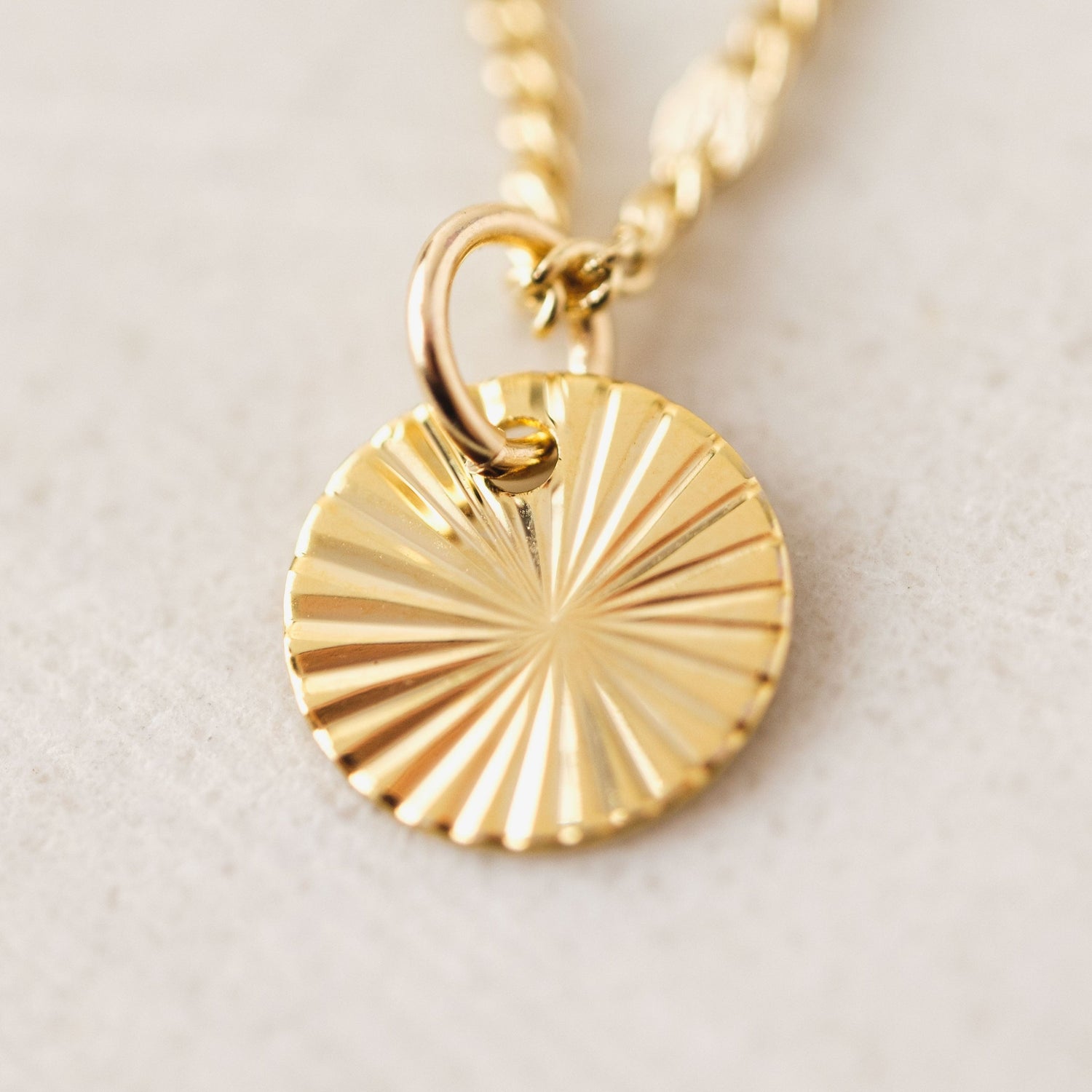 Simple and sophisticated, the textured circle charm swinging from a delicate chain makes the Everly Circle Necklace your new everyday accessory. This style is also available in a hoop earring.