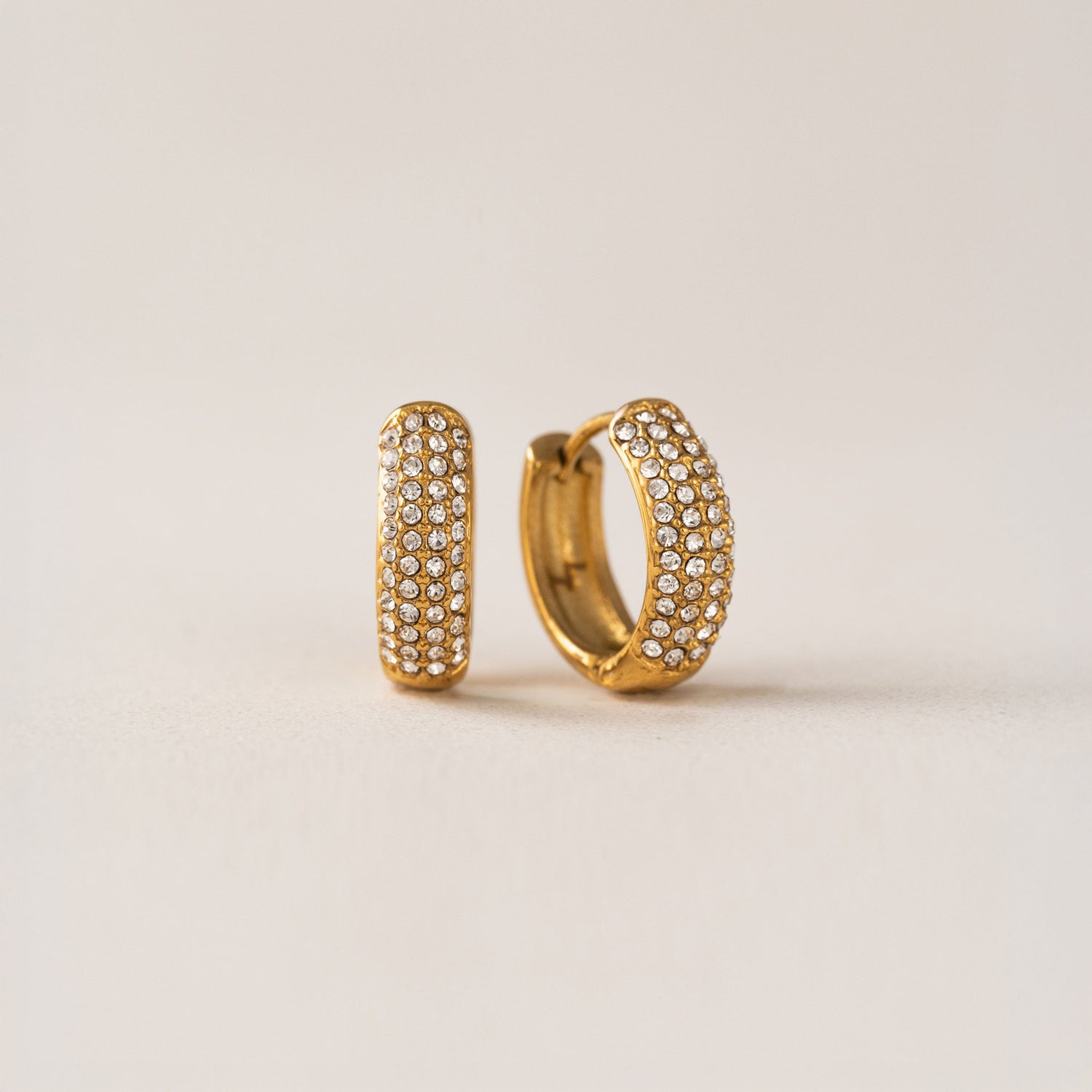 Shine bright in these bold hoops - perfect for adding some serious sparkle to your look. Brilliant cubic zirconias set in sleek stainless steel & 18K Gold-PVD.