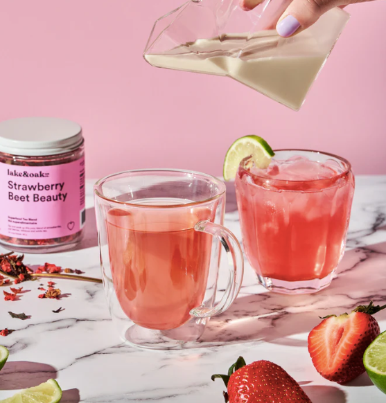 This gorgeous pink tea screams summertime with every fruity, energizing sip. Juicy notes of ripe strawberry, goji berry and hibiscus balance deliciously with subtly sweet and creamy white tea. Packed with glow-boosting and immune-supporting antioxidants, it's a treat for both your bod' and taste buds.