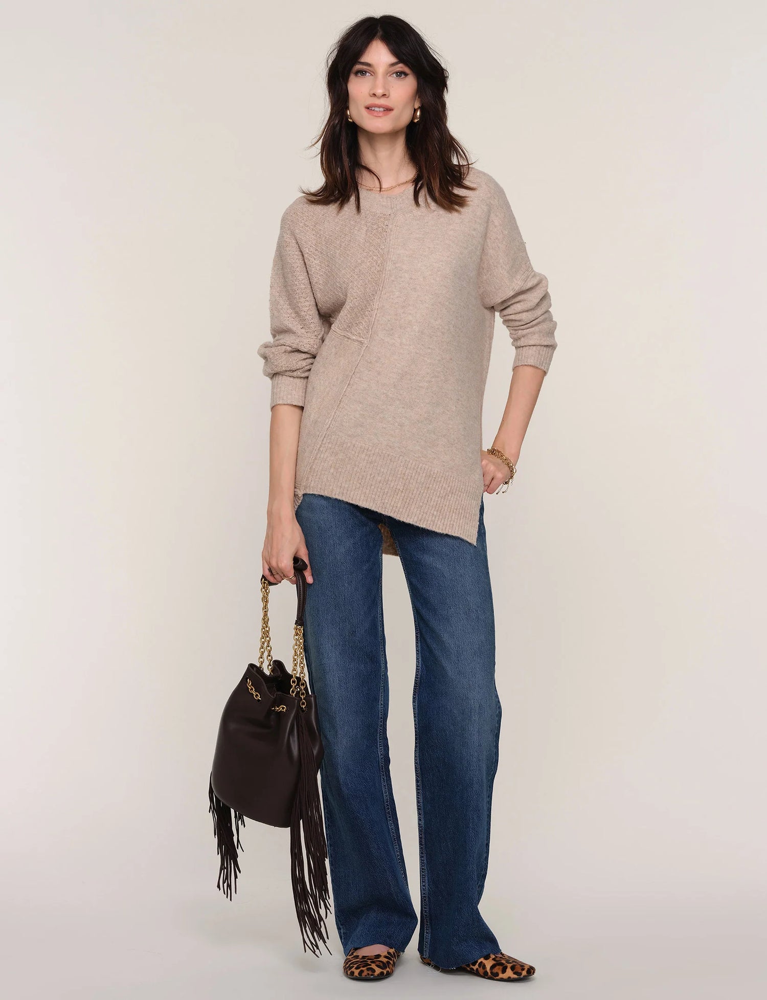 The Lorde Sweater is a soft, crew-neck with a super relaxed fit. It features exposed seam details and an asymmetric hem. Scrunch up the sleeves and pair with jeans and boots.