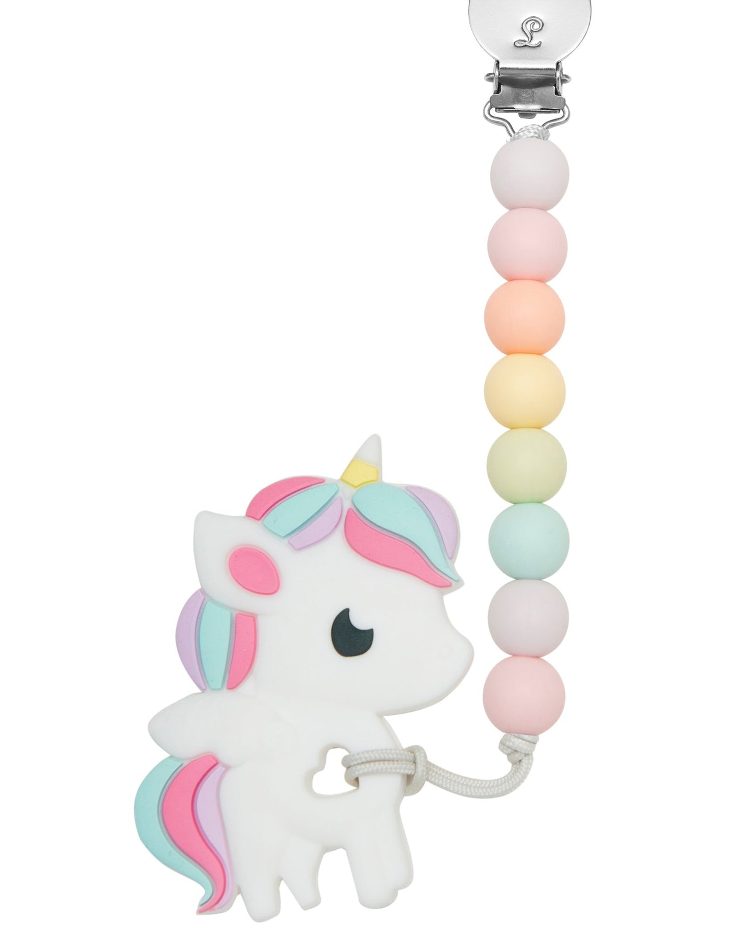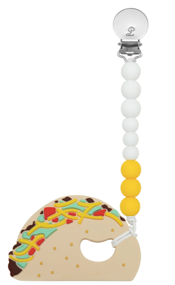 The silicone teether with clip set comes with a standalone silicone teether and a pacifier/teether holder for the ultimate teething relief. Made of 100% high-quality food-grade silicone, our silicone teether features nubby textures on both sides to soothe sore gums. It can be chilled for added relief. The heart-shaped cut-out allows for attaching an optional clip. The additional stainless metal clip is rust-free and nickle-free. It opens with ease but grips on clothing or blanket tightly for optimum security. Tested regularly at a government-accredited lab to meet and exceed safety standards