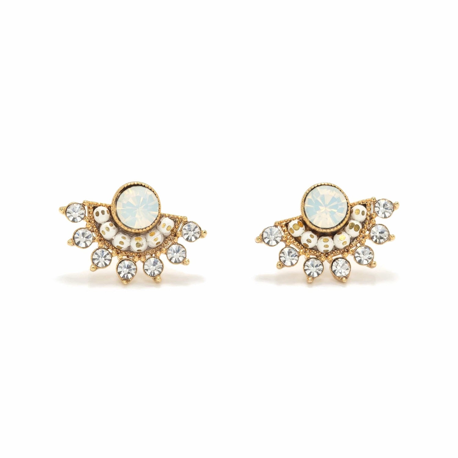Our Nico Fan earrings are the definition of delicate elegance. These show-stopping studs shimmer enough to catch the light but won't overpower your own sparkle.