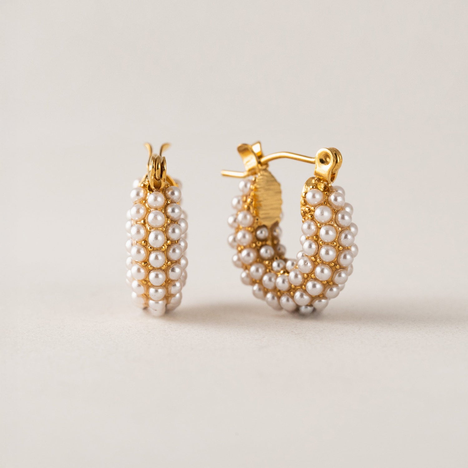 Create a magnetic presence with these chunky dotted pearl hoops. Made with PVD and stainless steel, you can wear these waterproof earrings anywhere.
