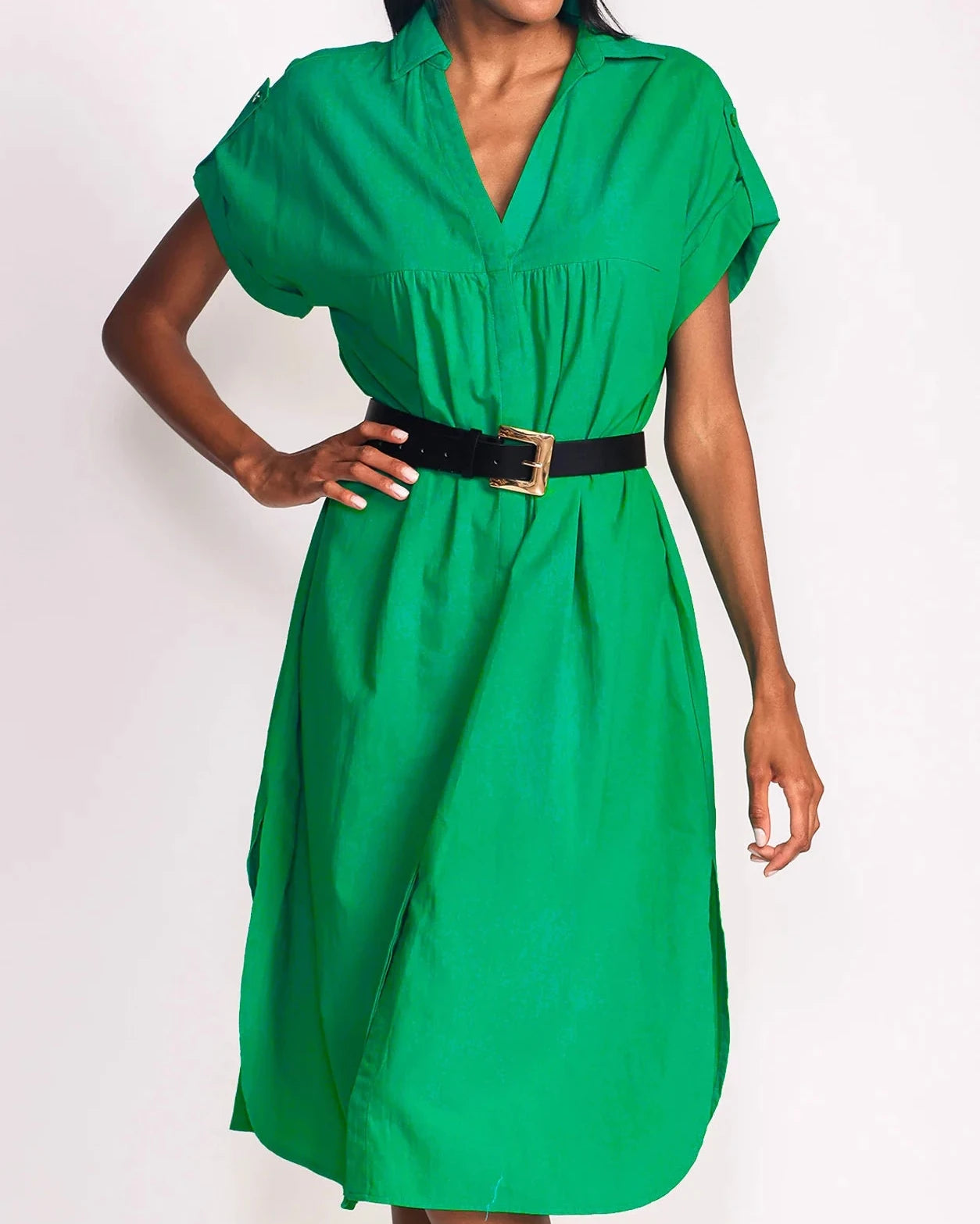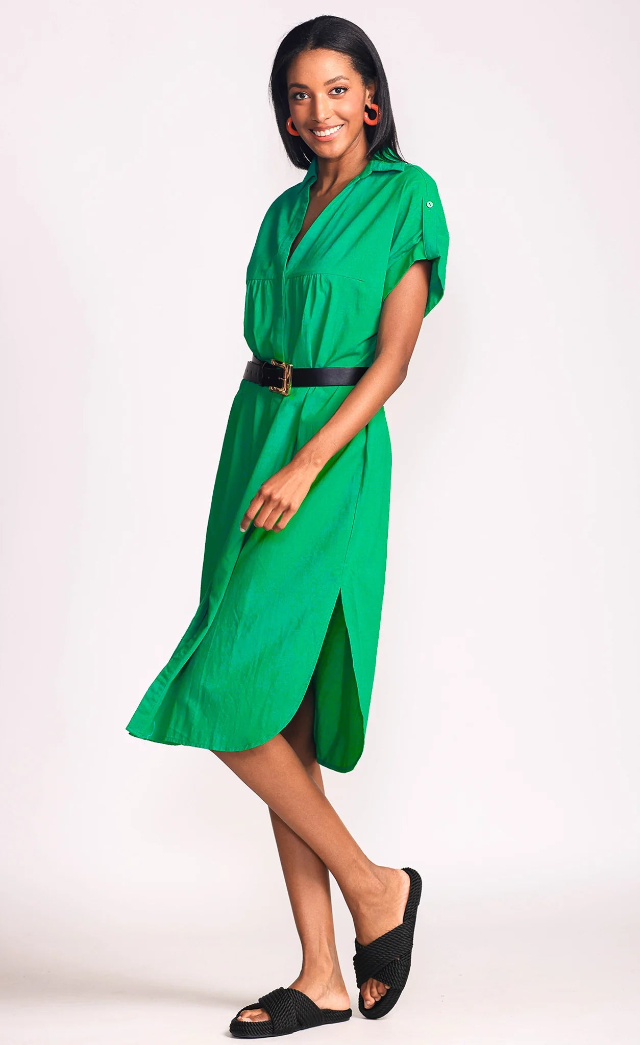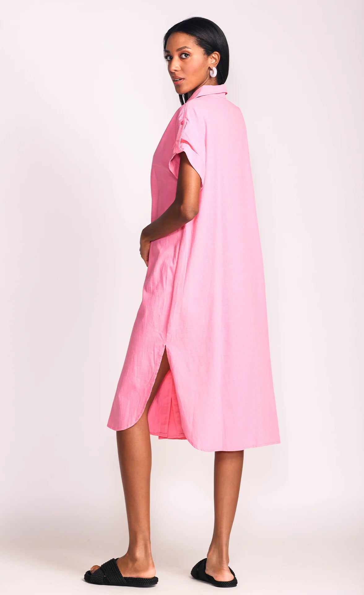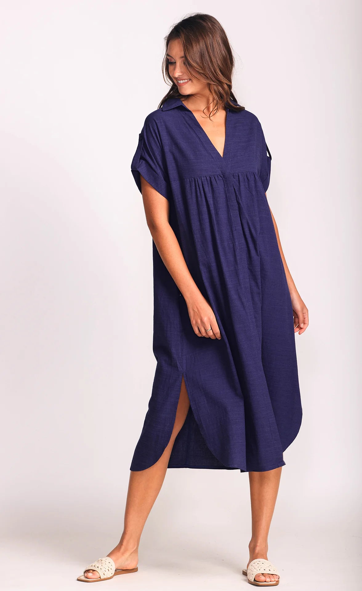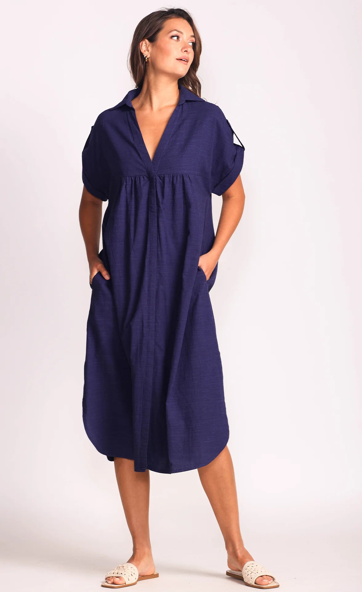 Effortlessly chic, the Beatrice Dress features a curved hem and relaxed fit, with a front button closure for easy wear. Simply throw it on for a stylish look in seconds.